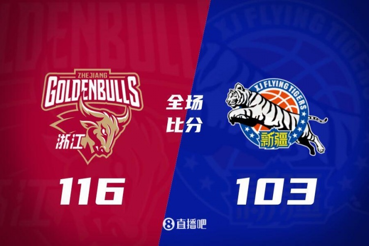 比赛开始,双方上来都比较慢热,哈雷尔接连内线强攻打成,琼斯和约克也联手撑起浙江进攻端,琼斯接连内线强打造杀伤,首节浙江领先11分,次节李炎哲连续内线吃饼助分,王奕博接连中远投给出回应,赵睿里突外投连砍10分止血,但约克连砍12分强势回应并带队拉开20分领先。下半场,新疆上来轰出16-4攻击波直接追至个位数分差,约克三分加程帅澎突破回应8-0稳住局势,琼斯三分再进,三节浙江还领先17分,末节浙江上来再次拉开20分以上领先,赵睿和齐麟接连助队追分,但浙江总能回应保持住十几分领先,最终浙江116-103力克新疆,终结对手3连胜。