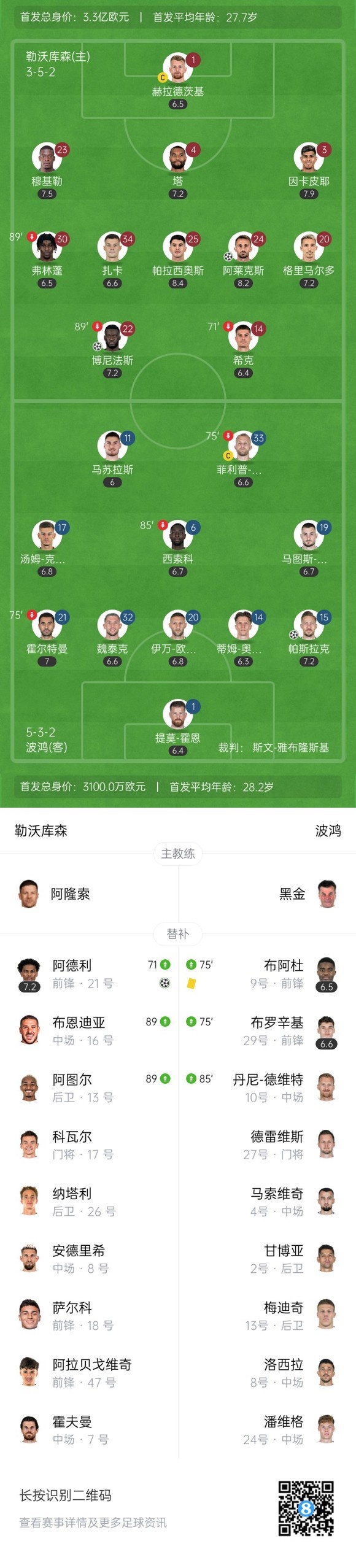 双方首发以及换人信息: