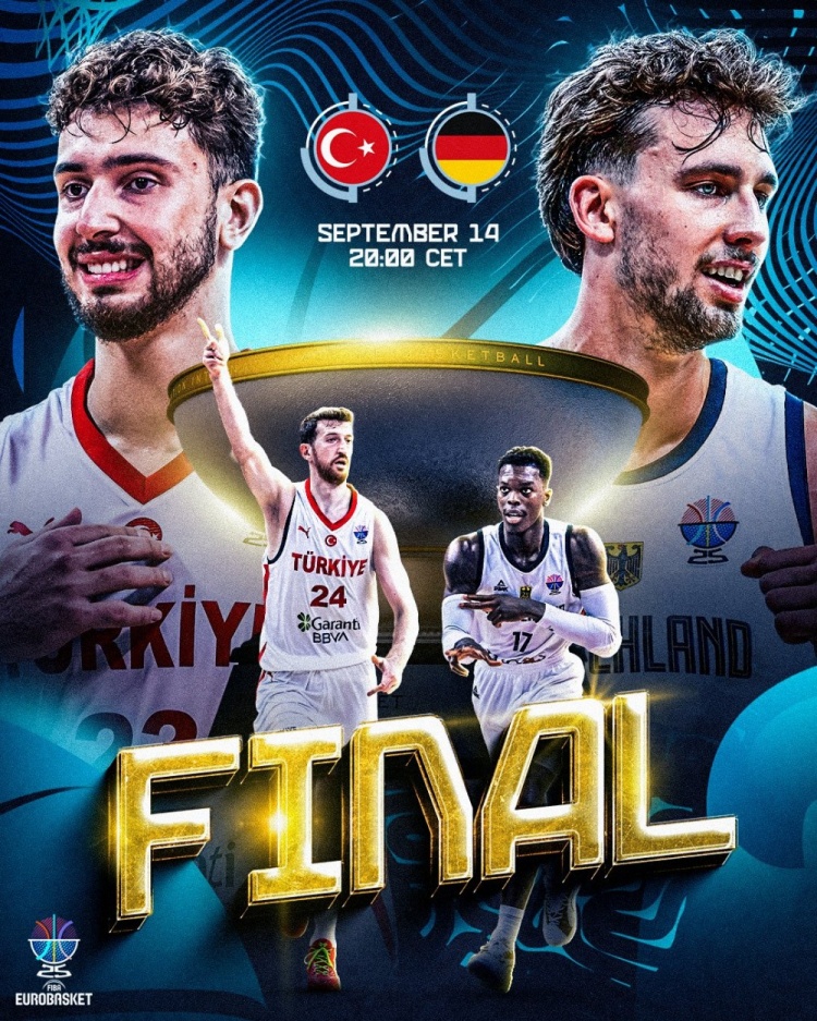 比赛开始,土耳其连续3记三分轰出13-2梦幻开局,但邦加里突外投连砍7分,德国男篮迅速回应11-1追平比分,申京连续送帽但吃到2犯,首节德国领先2分,次节德国进攻突然停滞,施罗德连续失误,小瓦格纳苦苦支撑,申京发力里突外投单节怒砍12分带队半场反超6分。下半场,德国上来10-3小高潮直接反超,但申京上来又是连续砍分助队反超回来,双方比分交替领先异常胶着,末节申京攻防建功带队再次拉开比分,但德国总能回应咬住比分,奥布斯特和邦加连续三分再次反超回来,比赛趋于白热化,申京关键上篮没进,施罗德干拔中投领先3分,申京绝平三分不中,最终德国88-83险胜土耳其,9战全胜夺冠军!