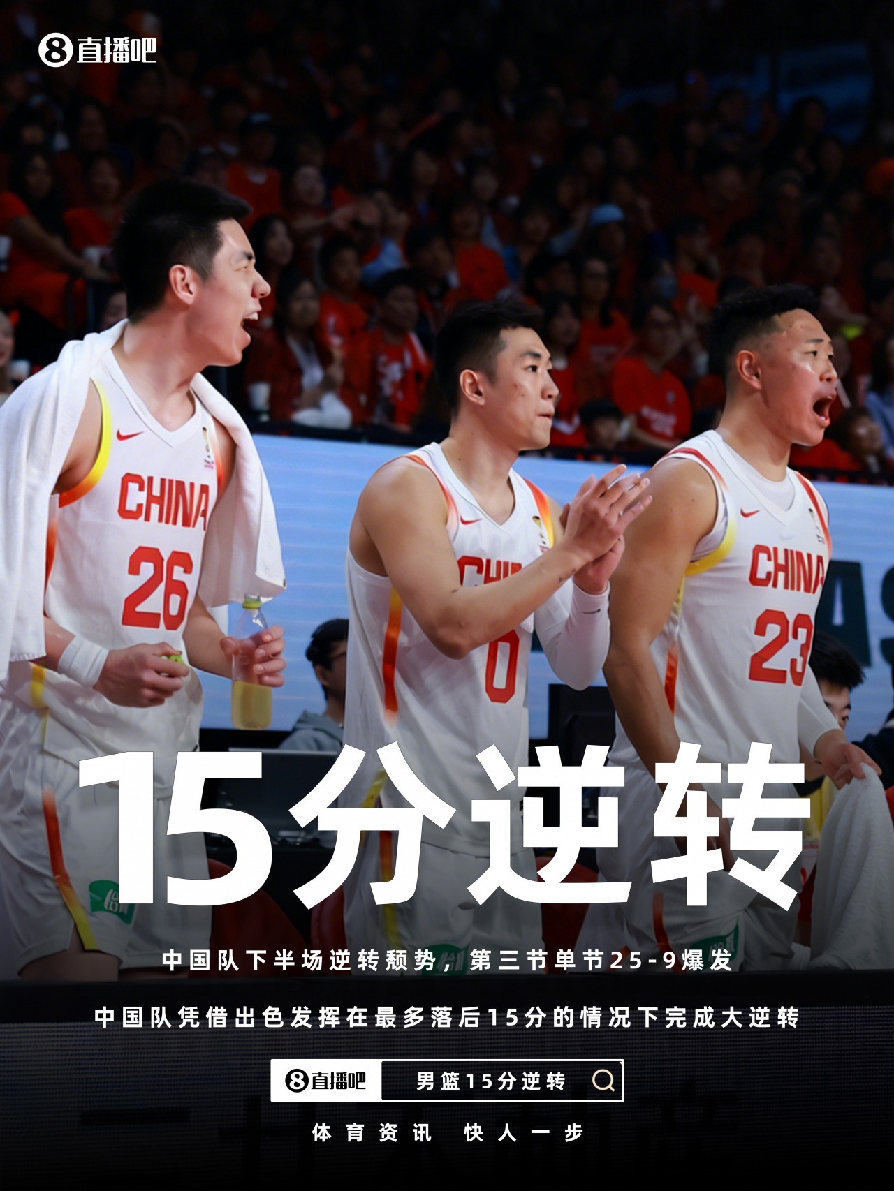 🔥男篮世亚预-第三节轰25-9中国男篮15分逆转日本!胡金秋20+12