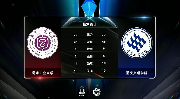 末节比赛,湖南工大虽然还是没能拉开分差,但是一直没有给对手反超的机会,分差始终保持在五分以内,柳锐反击上篮打停比赛,暂停回来重庆文理反扑势头凶猛,不过湖南工大总能给出回应,最终湖南工大力克重庆文理。