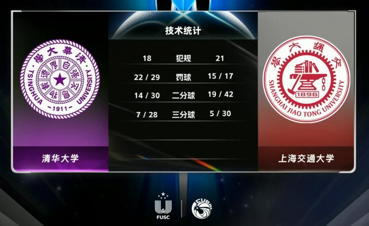 休息归来上海交大率先开火,顿家威和吴泽昊一内一外连续拿分带队送出17-9的攻势一度实现比分反超,但前半段发挥出彩的他们在后半段状态回落;清华大学则及时调整过来,温淞连续制造杀伤频频上罚球线拿分,加上石奎最后三分命中,清华大学重新取得4分领先进入第四节。