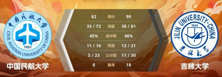 末节决战,双方的竞争依旧十分激烈,都无法获得拉开分差的机会,比赛悬念也是保持到了最后,关键时刻吉林大学突然发力,三分钟的时间里轰出一波16-0的小高潮,比赛直接没了悬念,最终吉林大学99-82力克中国民航。