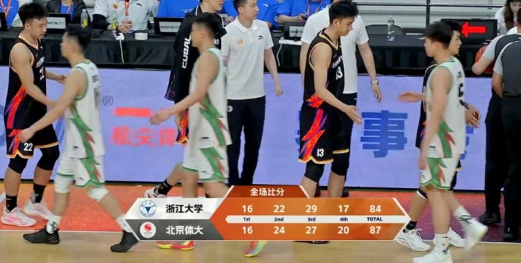 休息归来双方前半节继续拉锯,北京体大一直保持着微弱优势占据上分,不过后半段出现3分钟的得分荒,浙大抓住机会送上一波9-0的攻势一举弯道超车实现反超,潘睿彦的三分为北京体大破荒止血,最后黄佳明命中接近压哨三分帮助北体大追平比分结束第三节。