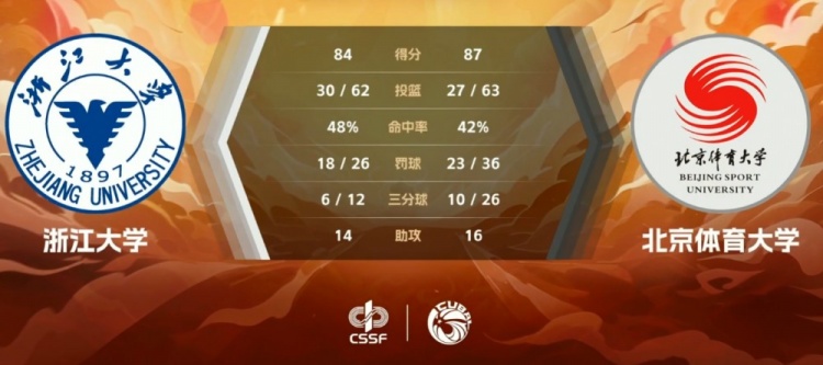 末节双方继续拉锯多次互换领先,杨腾飞的三分和罚球帮助北体大取得领先,但回头浙大也在石尔登的三分进球中做出回应。拉锯战悬念一直保留到最后,最后时刻浙江大学连续出现三次致命失误,同时最后丢了关键防守篮板导致败局,北体大在连续罚丢4次罚球的情况下,最后黄佳明两罚一中奠定胜局。最终,北京体育大学力克浙江大学拿下比赛。