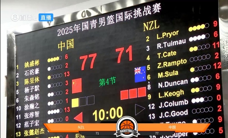 中国U16数据:张子一10分5篮板、张懿赵杰18分8篮板3助攻、张淳智13分4篮板、陈昱休13分4篮板2助攻、姚盛彬6分、岳铂然5分