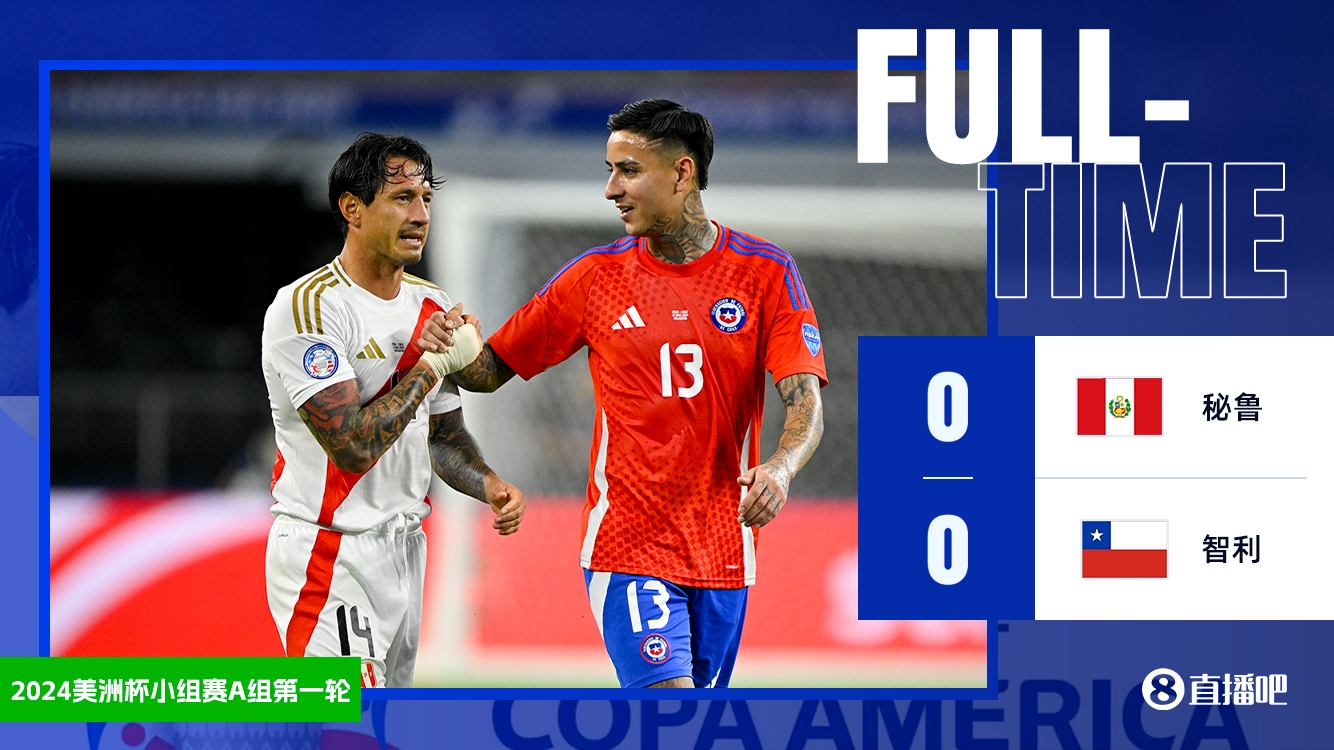 6月22日讯 北京时间6月22日早8时整,2024年美洲杯小组赛A组第1轮展开角逐,秘鲁对阵智利。上半场桑切斯门前失良机,下半场布拉沃屡次救险。最终智利0-0战平秘鲁,智利全场控球率超6成仅1射正,秘鲁下轮将对阵加拿大,智利将迎战卫冕冠军阿根廷。
