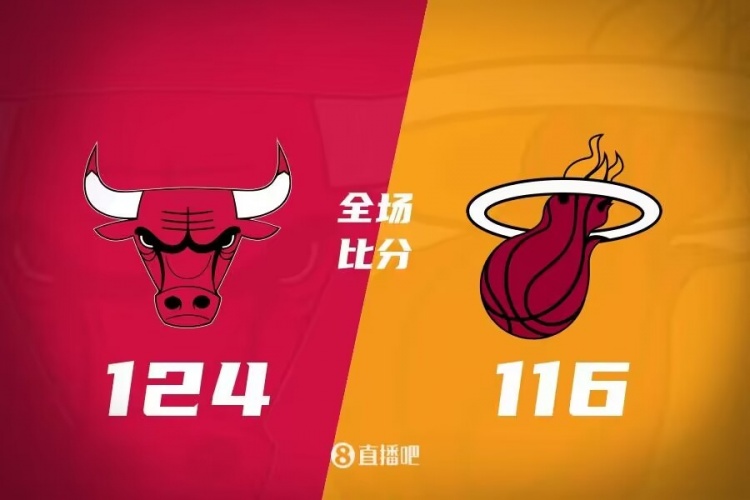 比赛开始,热火非常慢热,公牛则是反客为主,外线多点开花连轰7记三分,直接打出33-8的梦幻开局,卡鲁索受伤离场并没有影响公牛进攻效率,热火回应10-0止血,次节公牛进攻端继续发力,怀特外线接连发炮,公牛重新拉开20分以上领先,但马丁里突外投连续取分,热火回应12-0进攻波后再打出小高潮直接在半场追到差4分。下半场,武切维奇开始发挥,单节轰下15分,公牛重新拉开双位数领先,热火进攻端还是有些受阻,好在巴特勒及时站出来止血,乐福成为奇兵,热火三节结束落后3分,末节双方继续拉锯战,热火始终能咬住比分,怀特联手德罗赞再次拉开比分,热火还能给出回应,道苏姆命中关键三分,最终公牛124-116力克热火。