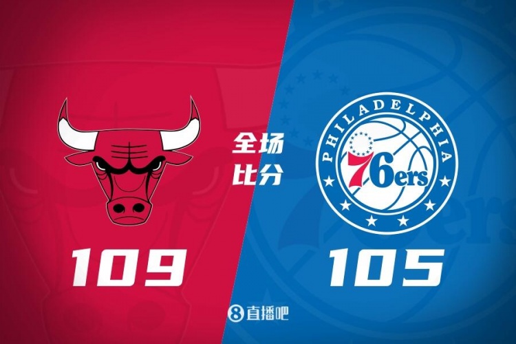比赛上来,两队的进攻表现都不算好,可能是受体力影响公牛在首节后半段落入下风,76人取得场上领先,不过进入次节公牛开始找回状态,一波7-0的小高潮追上比分并成功实现反超,半场结束时76人落后4分;下半场回来双方开始展开拉锯,公牛虽然占据领先但始终无法拉开分差,比赛悬念保持到了最后,关键时刻马克西和恩比德连续的绝杀机会不中,比赛进入到加时,加时赛两队依旧是难解难分,德罗赞的绝杀三分同样打铁,第二个加时赛哈登和哈里斯连续追平球不中,最终公牛双加时109-105力克76人,终结了后者的八连胜。