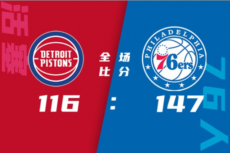 首节开局哈登和恩比德很快进入状态联手拿下13分并帮助球队取得19-8的开局领先早早抢到主动权,活塞虽然这之后进攻端稍稍找回状态依靠连续三分尝试追赶比分,但单纯比拼进攻他们完全不是76人的对手,他们在第二节轰出23-7的攻势一举拉开比分并奠定半场22分的领先优势。值得一提的是伤愈复出的恩比德半场轰下22分,哈登则送出11+8+9的全能数据。休息归来活塞加强进攻单节拿下32分表现非常不错,奈何76人这边势不可挡,哈登三节就拿到三双数据,恩比德和马克西联手送出23分,76人回敬单节42分并在第三节就拿到32分领先早早奠定胜局。最终,76人赛季三杀活塞迎来最近6场比赛的第5场胜利。