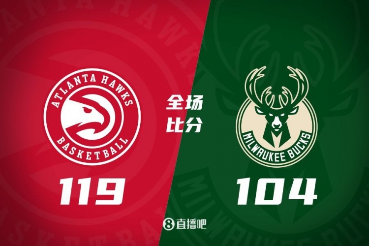 比赛开始,字母哥联手利拉德带队打出16-6不错开局,但雄鹿替补仅波蒂斯状态在线,老鹰替补则是多点开花,接连冲击内线追分并首节反超3分,次节里萨谢里突外投扩大领先,字母哥和利拉德苦苦支撑进攻,博格丹单节3记三分轰下13分,半场老鹰领先到双位数。下半场,字母哥和利拉德依然撑起球队进攻,雄鹿接连外线三分一度追到个位数,但亨特接连三分回应,老鹰全民皆兵三节还保持12分领先,末节双方围绕着10分左右分差继续展开拉锯战,老鹰给机会雄鹿始终把握不住,最后老鹰“砍”字母哥,但他罚球不稳,最终老鹰119-104力克雄鹿,拿到5连胜的同时终结对手7连胜。