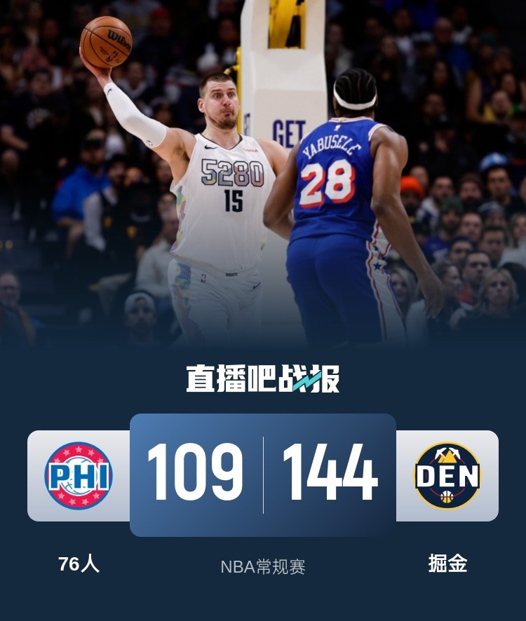 🏀约基奇27+13+10 威少11+7+9 掘金35分大胜送76人7连败