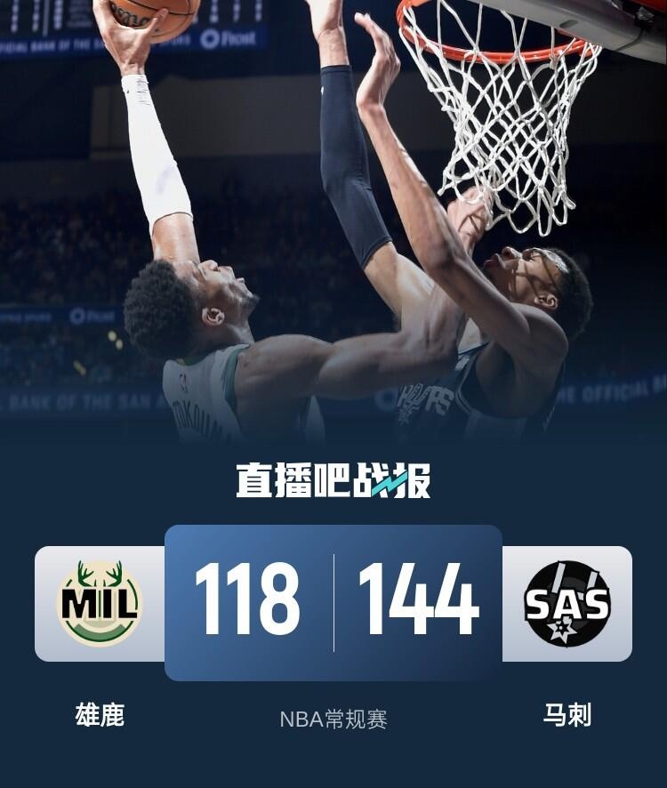比赛开始,双方开场大打对攻,字母哥高效输出,马刺多点开花给出回应,次节双方继续缠斗,利拉德得分助攻一肩挑,文班亚马联手凯尔登高效拿分还以颜色,半场战罢马刺70-71落后雄鹿1分。易边再战,保罗攻防两端立功带队取得两位数优势,末节马刺持续发力将分差拉开到20分以上,雄鹿苦苦追赶无果。最终,马刺144-118击退雄鹿,主场过关。