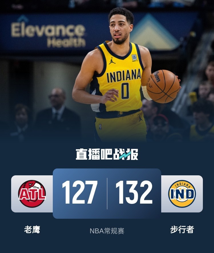 🏀西卡20+9+5 特雷-杨34+17 步行者6人得分15+送老鹰8连败