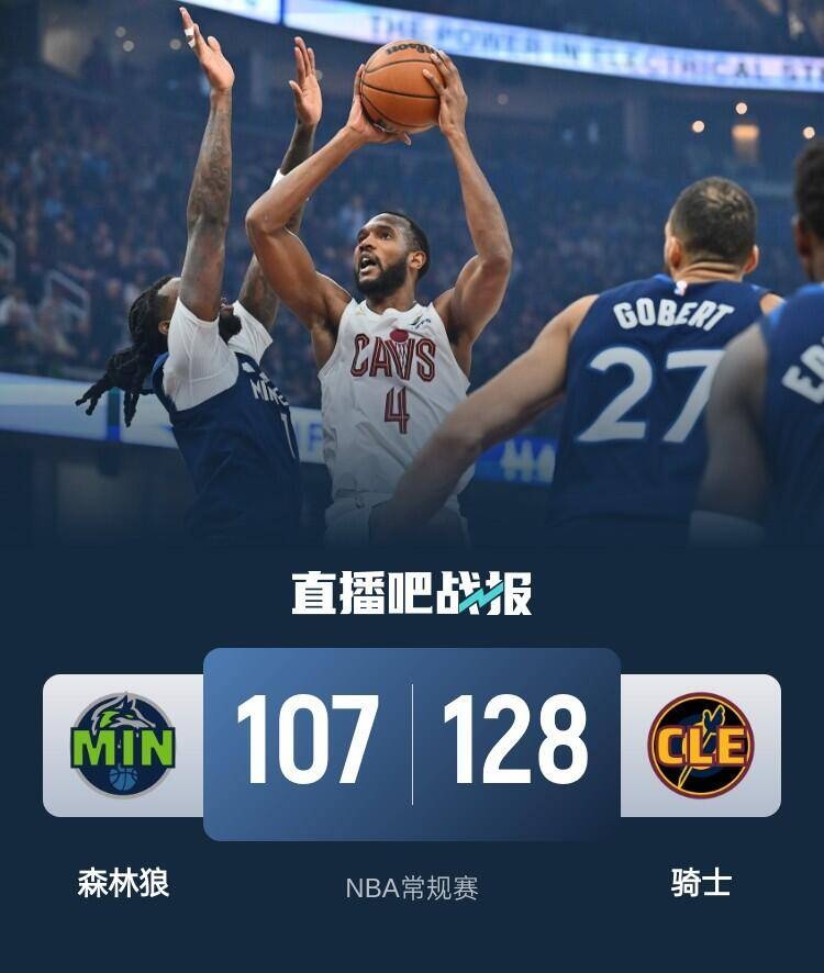 开场后骑士迅速进入状态,他们内外开花以20-3开局,森林狼手感不佳仅靠罚球拿到3分,此后森林狼虽然找到一些手感但未能形成连续性攻势。第二节上来莫布里攻防两端都表现亮眼,骑士将分差拉大到20分以上,虽然森林狼进攻端越打越顺,但骑士外线手感火热接连三分命中,随后爱德华兹开启得分模式为森林狼追分。易边再战,爱德华兹延续手感半节时间砍下17分,但森林狼防守端完全无法限制骑士,骑士连中两记三分在三节结束时领先到26分。第四节虽然爱德华兹依旧努力追分,但骑士多点开花始终将分差保持在20分以上,最终骑士128-107双杀森林狼取得3连胜,森林狼3连胜被终结。