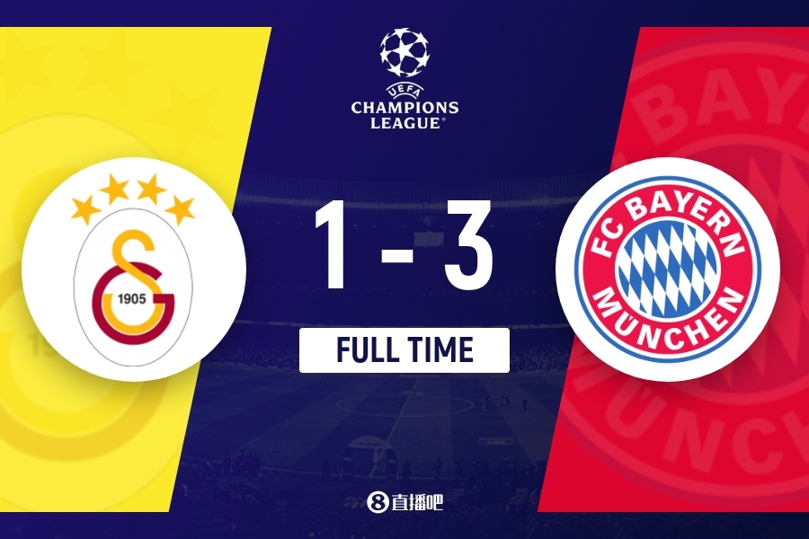全场比赛结束,拜仁慕尼黑3-1加拉塔萨雷。