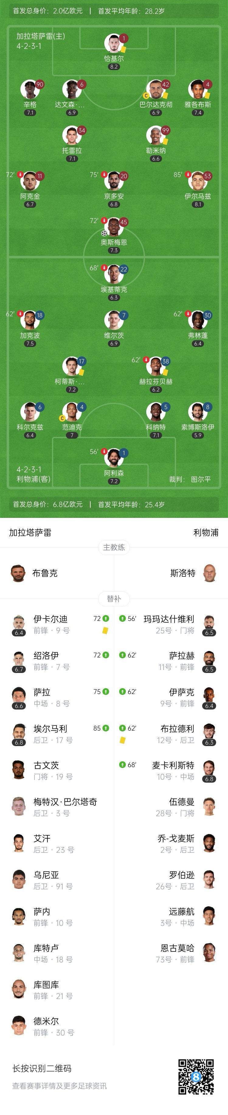 全场比赛结束,利物浦0-1加拉塔萨雷。
