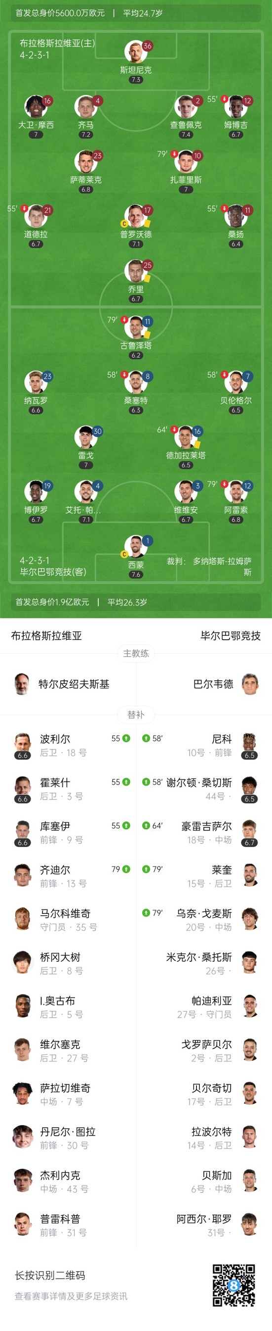 下半场补时4分钟,布拉格斯拉维亚0-0毕尔巴鄂。