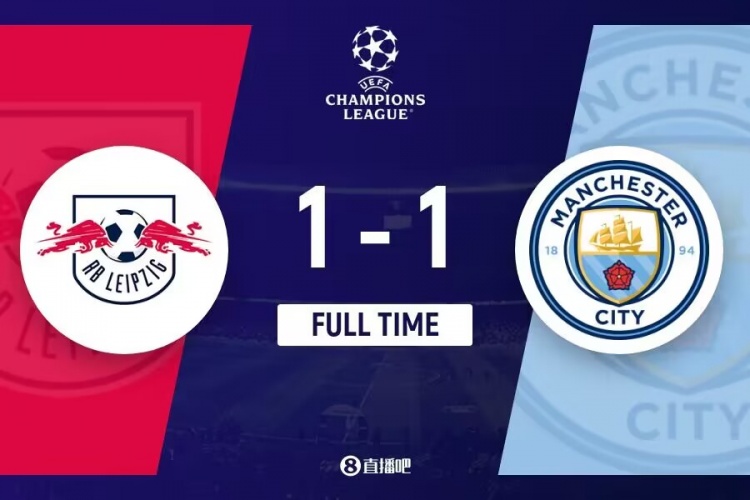 下半场伤停补时2分钟,全场比赛结束,最终曼城1-1莱比锡。
