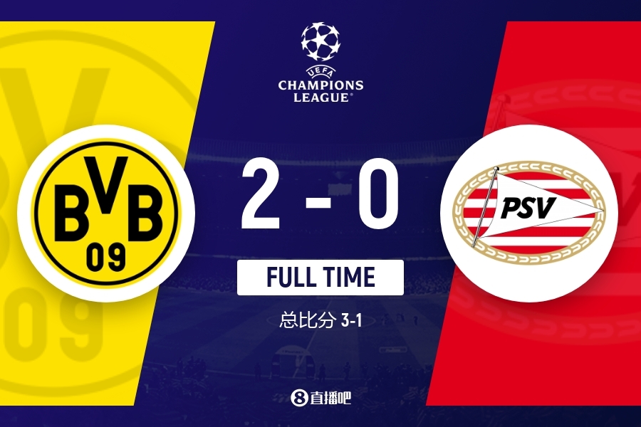 欧冠-多特2-0埃因霍温总比分3-1晋级8强 桑乔连场破门+伤退