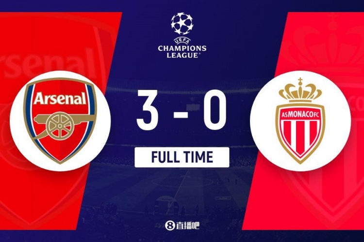 阿森纳3-0摩纳哥2连胜升第3 萨卡2射1传热苏斯助攻+屡失良机