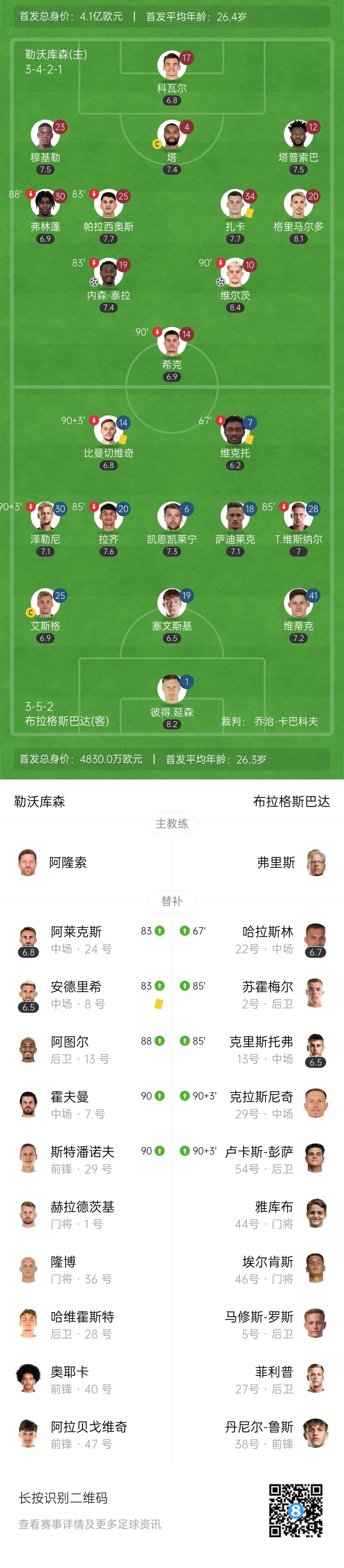 【双方首发及换人信息】
