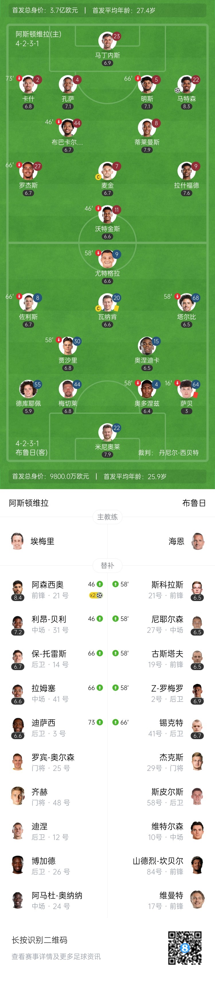 第61分钟,拉什福德左路撞墙杀进禁区!倒三角找到阿森西奥,后者抽射破门!本场比赛阿森西奥已梅开二度!维拉3-0布鲁日↓