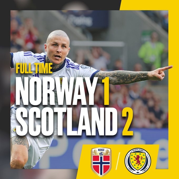 欧预赛-苏格兰连扳两球2-1绝杀挪威 哈兰德点射挪威三轮仅积1分