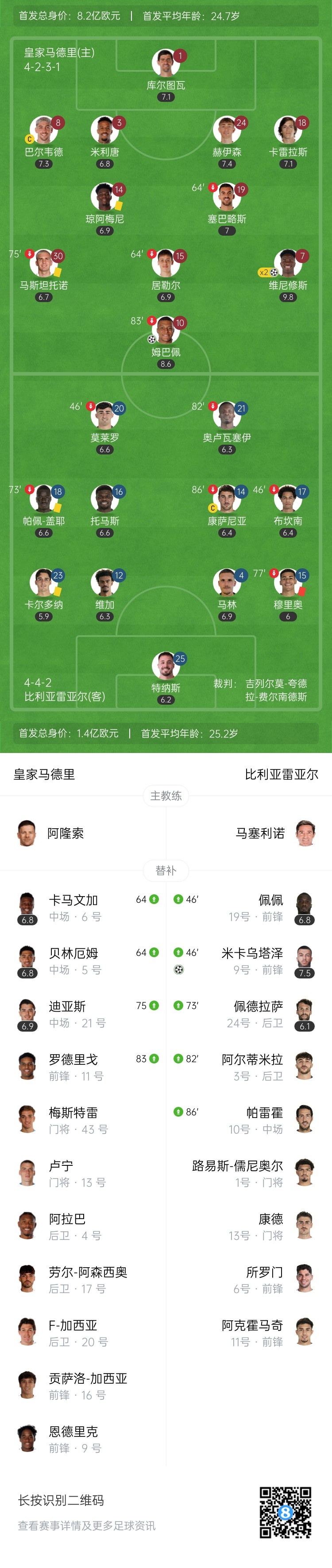 先赛暂登顶!皇马3-1十人黄潜 维尼修斯双响姆巴佩传射+伤退