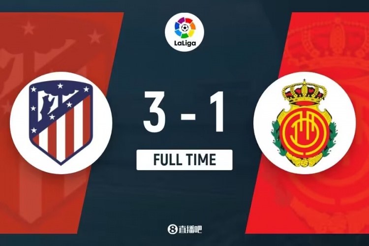 全场比赛结束,马德里竞技3-1马洛卡。