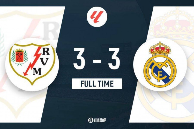 全场比赛结束,皇马3-3巴列卡诺。