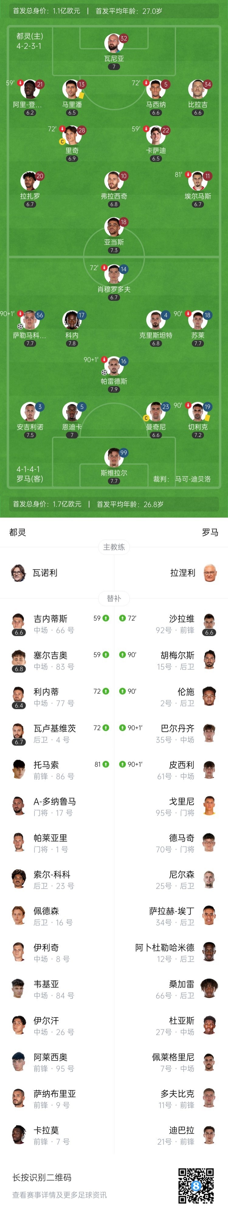 3月16日讯 北京时间3月16日01:00,意甲联赛第29轮罗马挑战科莫的比赛在朱塞普希尼加格利亚球场进行,上半场沙拉维造点,马伦点射闪击得手,斯维拉尔献神扑,下半场杜维卡斯推射扳平比分,韦斯利两黄一红被罚下,...发表于:03月16日