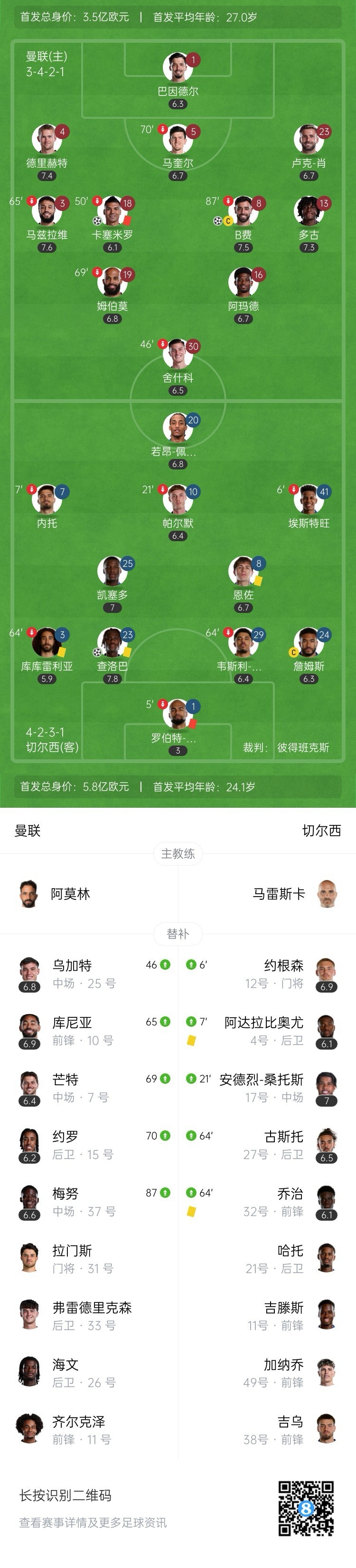 剧情拉满!十人曼联2-1十人切尔西 桑切斯、卡塞米罗染红B费建功