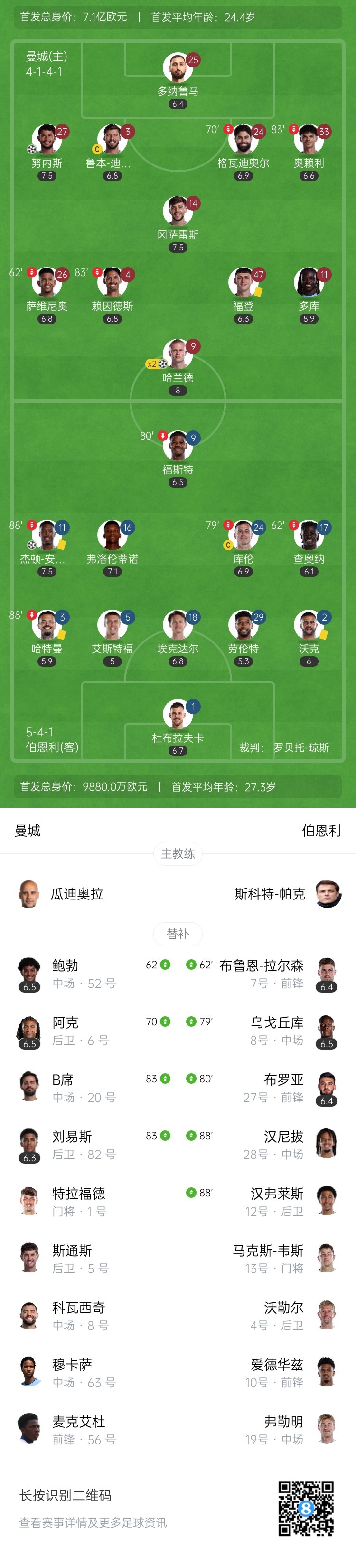 曼城5-1伯恩利 哈兰德2射1传建功 艾斯特福乌龙双响+送礼
