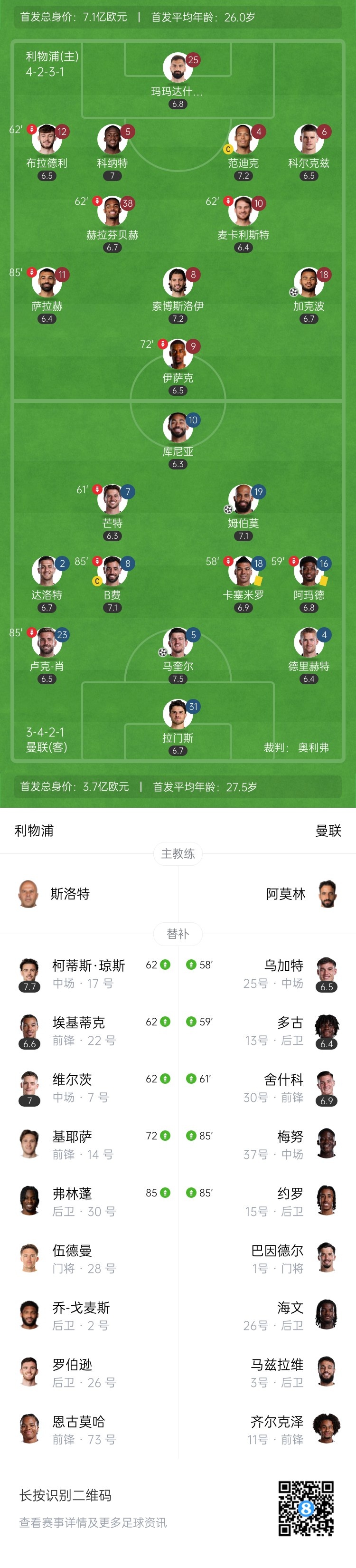10月20日讯 北京时间10月19日23:30,2025-26赛季英超联赛第8轮焦点战,利物浦坐镇安菲尔德球场迎战曼联。上半场阿玛德助攻姆伯莫62秒闪击,加克波中柱,伊萨克失单刀,利物浦暂0-1曼联;下半场加克波再中柱,萨拉赫失良机,随后加克波破门,马奎尔头球建功,最终利物浦1-2曼联,各项赛事4连败。