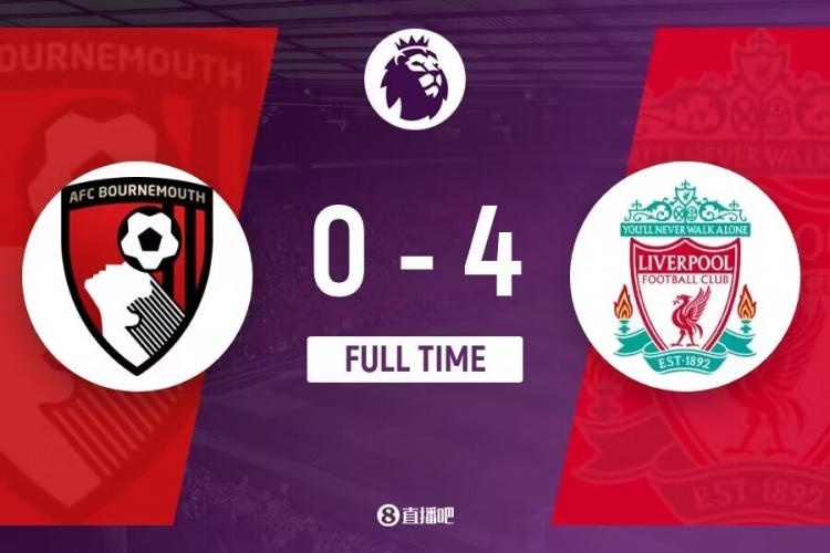 全场比赛结束,利物浦4-0伯恩茅斯。