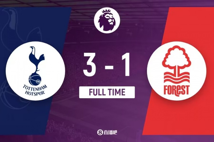全场比赛结束,热刺3-1击败诺丁汉森林。