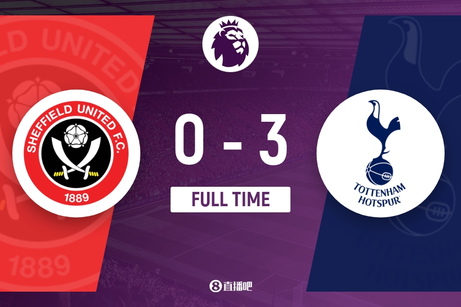 全场比赛结束,热刺3-0谢菲尔德联。