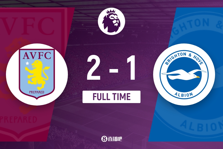 最终全场比赛结束,阿斯顿维拉主场2-1布莱顿。