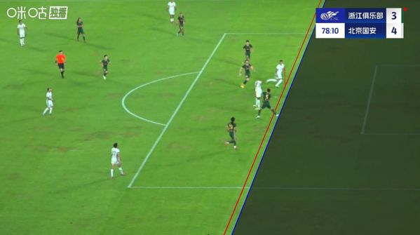 半场结束,浙江暂2-1北京国安。
