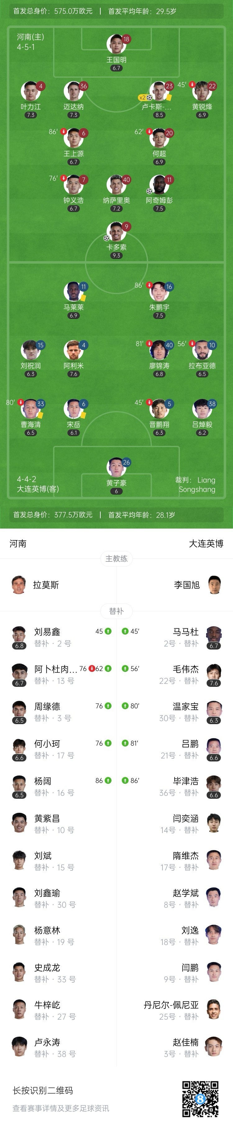 上半场补时第3分钟,纳萨里奥挑传身后,阿奇姆彭前插单刀吊射破门,河南队4-0领先大连英博。↓