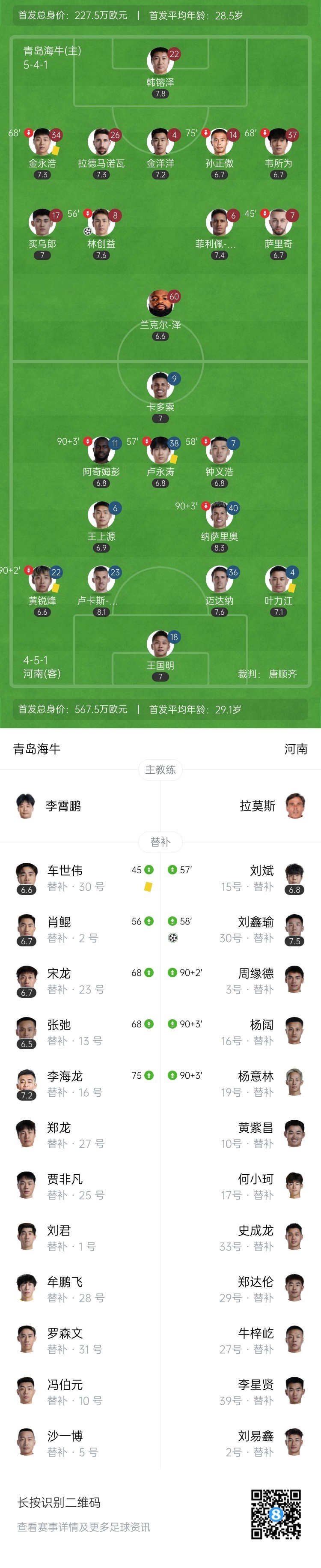 8月29日讯 北京时间8月29日19:00,中超第23轮,青岛海牛坐镇青岛青春足球场迎战河南队。上半场,阿奇姆彭进球越位在先,王国明奉献神扑,林创益补时破门;下半场,纳萨里奥助攻,刘鑫瑜凌空打门扳平比分。最终,青岛海牛1-1战平河南队遭遇3轮不胜,先赛一场积16分仍居第15位,落后保级区1分,河南队积23分暂居第11位。