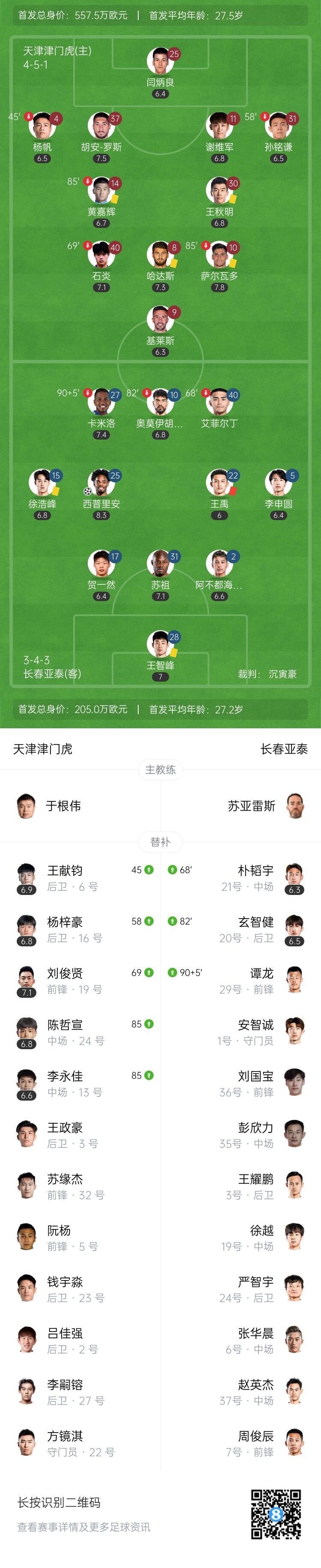 【双方首发以及替补信息】