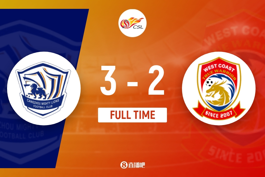 全场比赛结束,沧州雄狮3-2逆转青岛西海岸。