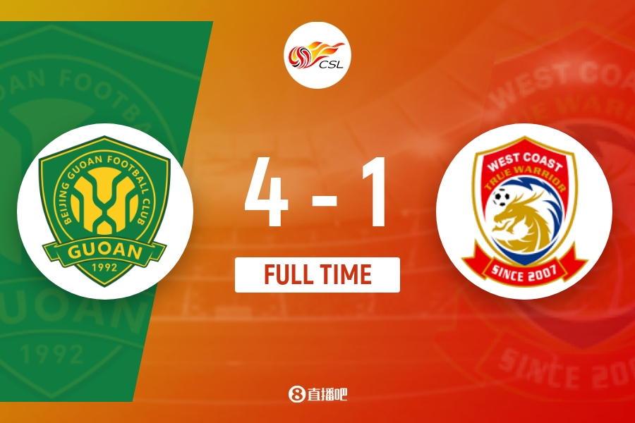 全场比赛结束,北京国安主场4-1击败青岛西海岸。