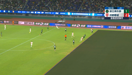 下半场补时6分钟。最终全场比赛结束,浙江1-3成都蓉城。