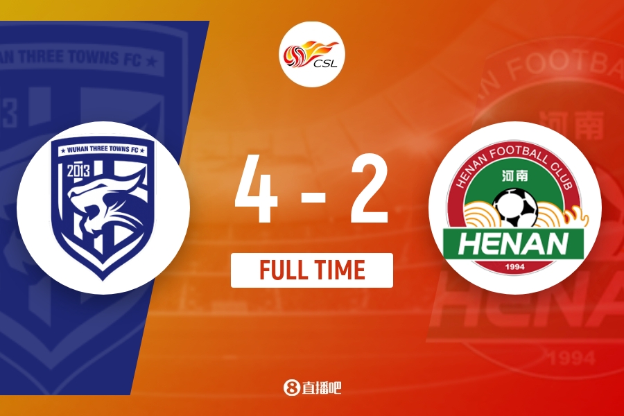 下半场补时8分钟。最终全场比赛结束,武汉三镇4-2河南队。