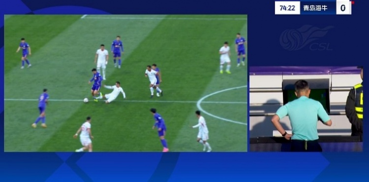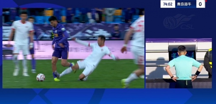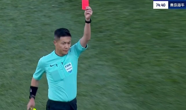 经VAR回放后改判直接红牌将金洋洋罚下。↓