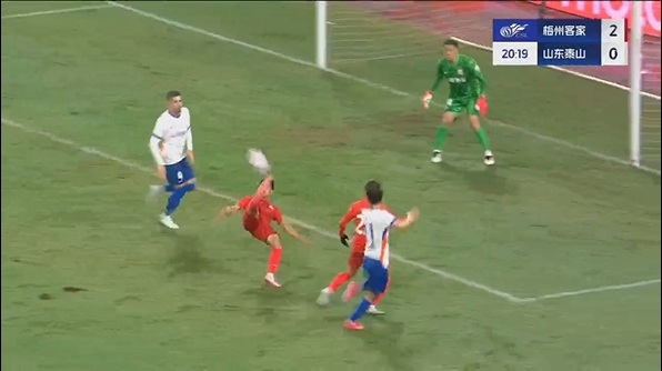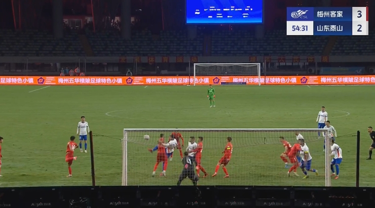 半场战罢,梅州客家暂3-1山东泰山。