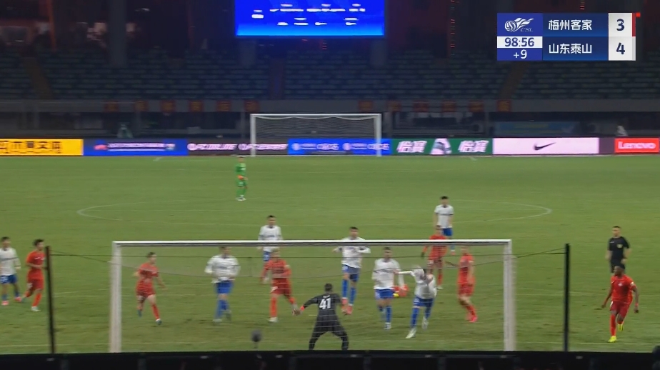 全场比赛结束,山东泰山客场4-3绝杀梅州客家。